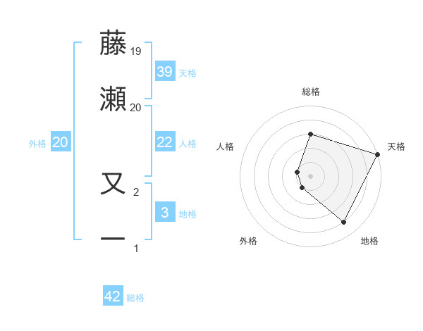 藤瀬 又一さんの総格は42画の3点!