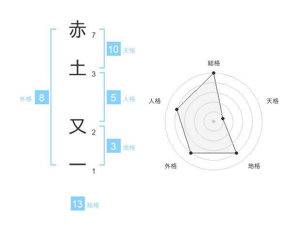 赤土 又一さんの総格は13画の5点!