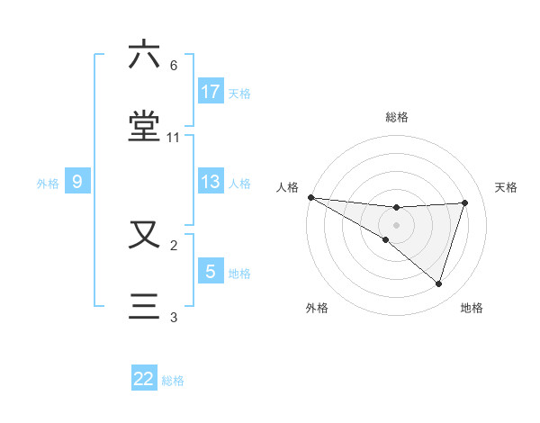 六堂 又三さんの総格は22画の1点!
