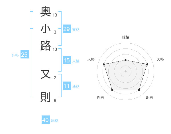 奥小路 又則さんを姓名の画数から五運を鑑定