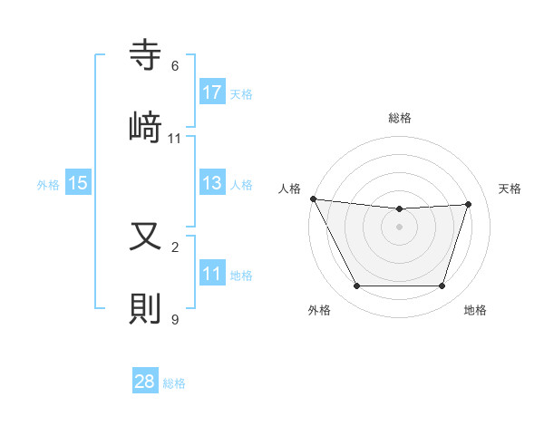 寺﨑 又則さんの天格は17画の4点!