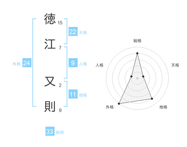 徳江 又則さんの天格は22画の1点!