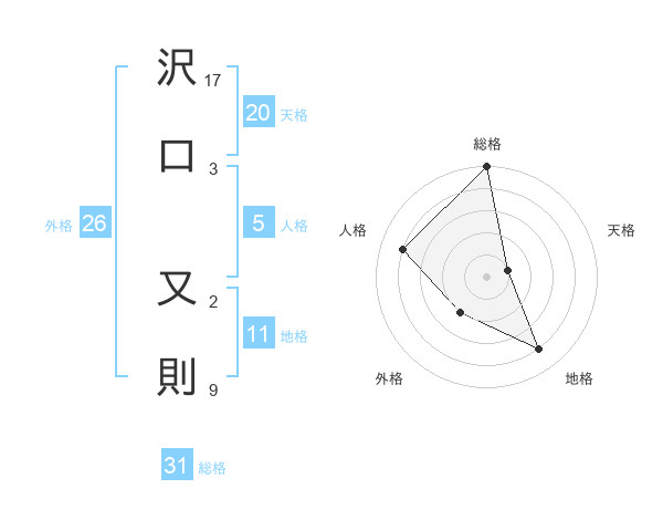 沢口 又則さんの総格は31画の5点!