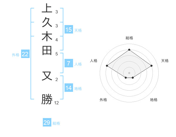 上久木田 又勝さんの総格は29画の4点