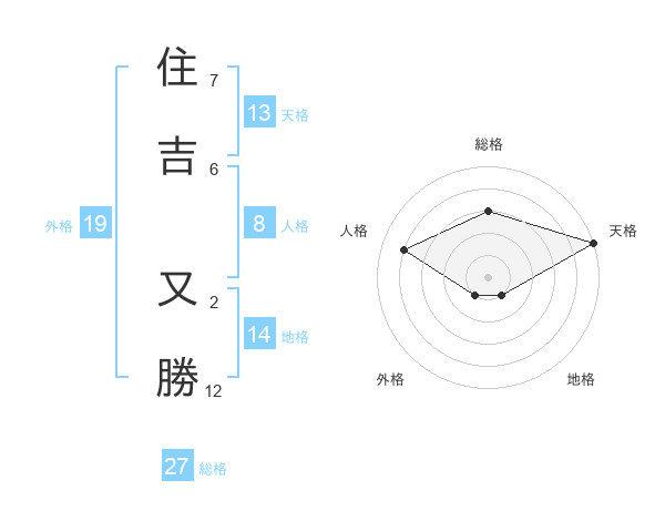 住吉 又勝さんを姓名の画数から五運を鑑定