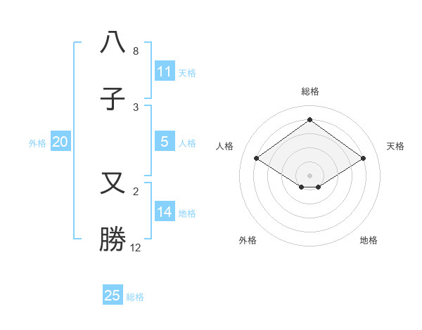 八子 又勝さんの総格は25画の4点!