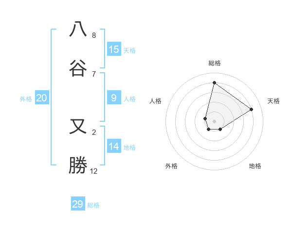 八谷 又勝さんの総格は29画の4点!