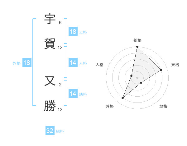 宇賀 又勝さんを姓名の画数から五運を鑑定