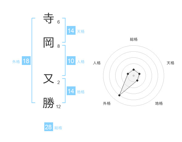 寺岡 又勝さんの外格は18画の4点!