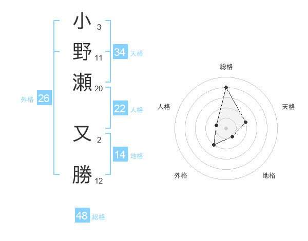 小野瀬 又勝さんを姓名の画数から五運を鑑定
