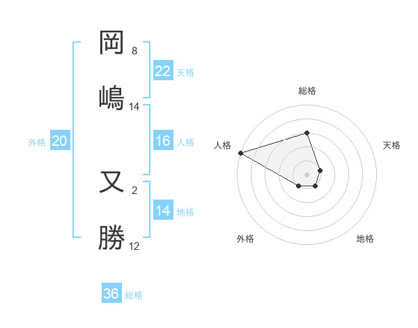岡嶋 又勝さんを姓名の画数から五運を鑑定