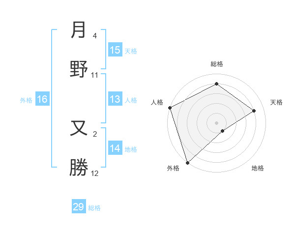 月野 又勝さんの総格は29画の4点!