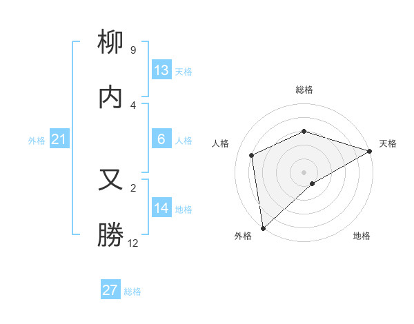 柳内 又勝さんの天格は13画の5点!