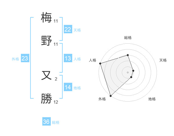 梅野 又勝さんを姓名の画数から五運を鑑定