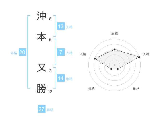 沖本 又勝さんの総格は27画の3点!