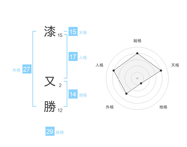 漆 又勝さんの総格は29画の4点!
