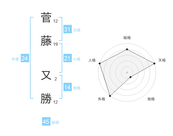 菅藤 又勝さんの総格は45画の4点!