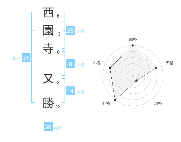 西園寺 又勝さんを姓名の画数から五運を鑑定