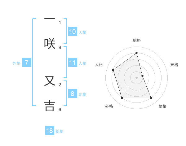 一咲 又吉さんの総格は18画の4点!