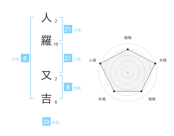 人羅 又吉さんを姓名の画数から五運を鑑定