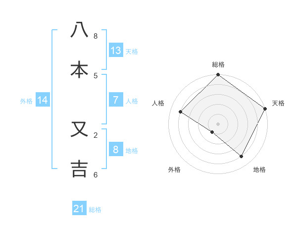 八本 又吉さんの総格は21画の5点!