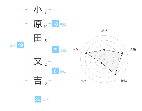 小原田 又吉さんを姓名の画数から五運を鑑定