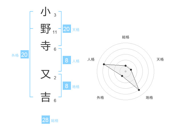 小野寺 又吉さんを姓名の画数から五運を鑑定
