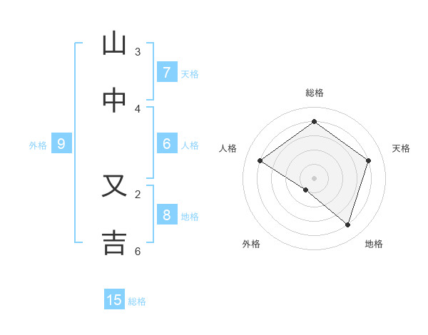 山中 又吉さんの総格は15画の4点!