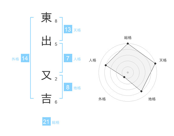 東出 又吉さんの総格は21画の5点!