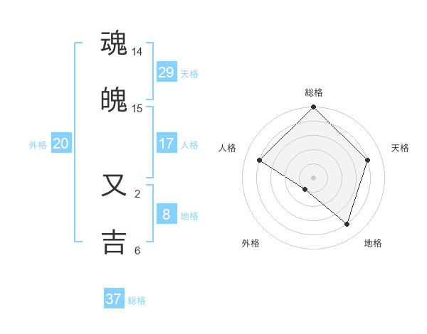 魂魄 又吉さんの総格は37画の5点!