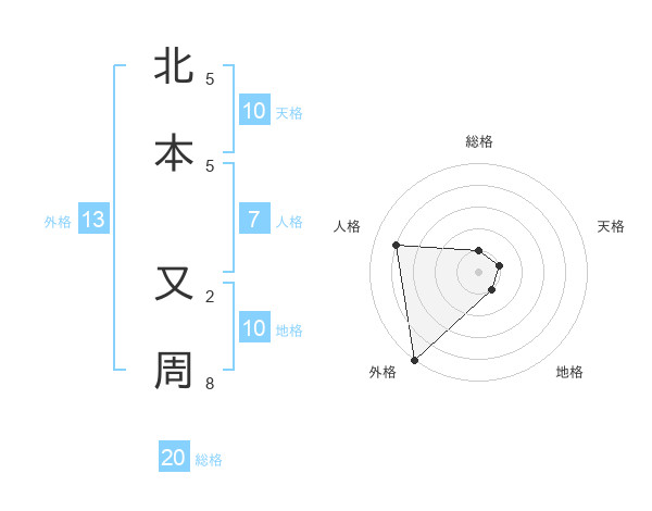 北本 又周さんの外格は13画の5点!