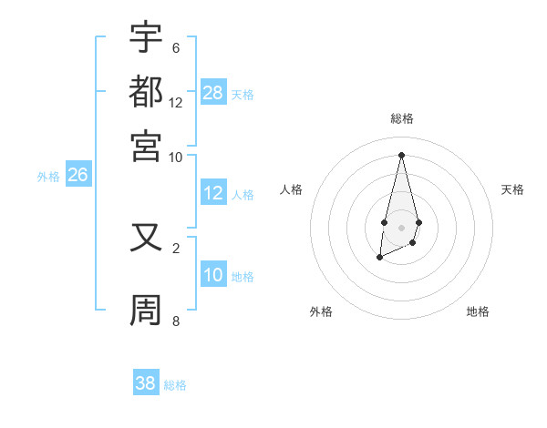 宇都宮 又周さんを姓名の画数から五運を鑑定