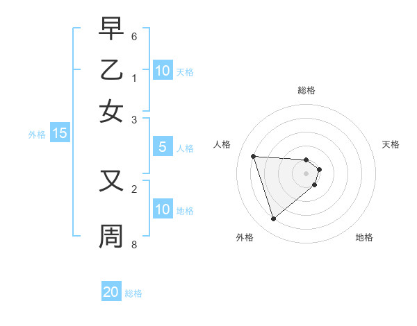 早乙女 又周さんを姓名の画数から五運を鑑定