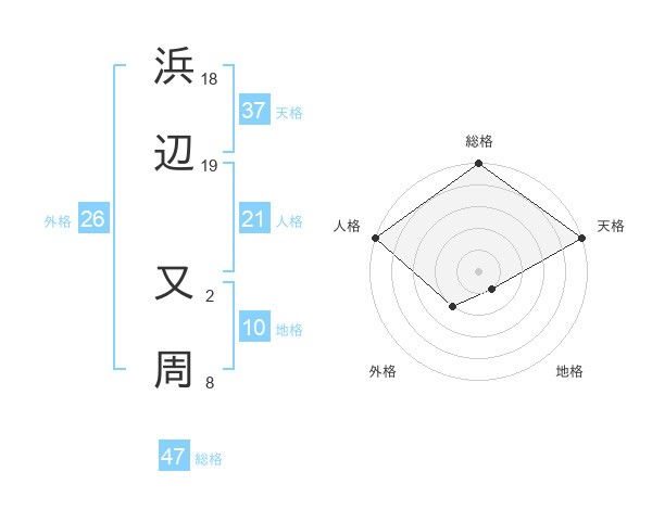 浜辺 又周さんを姓名の画数から五運を鑑定