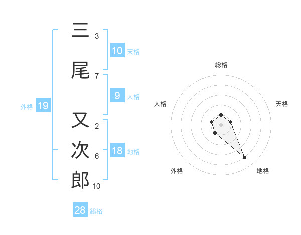 三尾 又次郎さんの総格は28画の1点!
