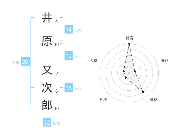 井原 又次郎さんを姓名の画数から五運を鑑定