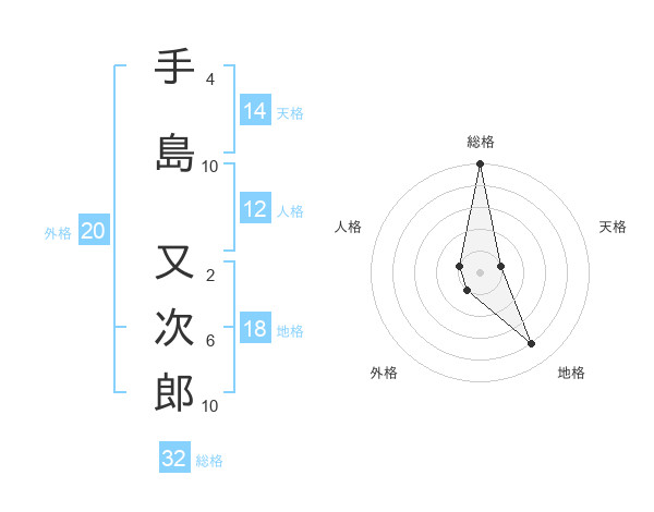 手島 又次郎さんを姓名の画数から五運を鑑定