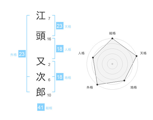 江頭 又次郎さんを姓名の画数から五運を鑑定