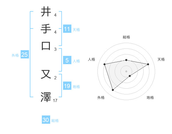 井手口 又澤さんを姓名の画数から五運を鑑定