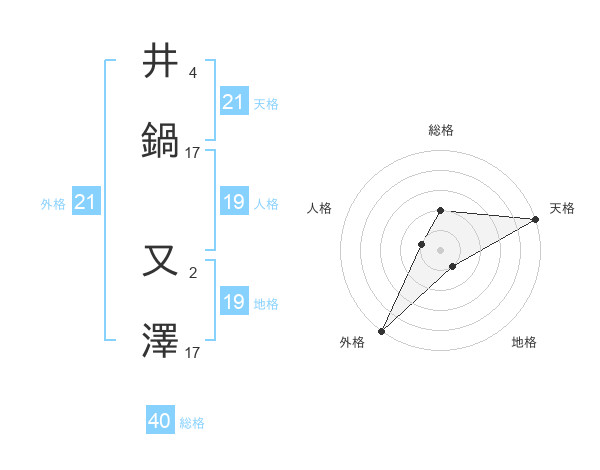 井鍋 又澤さんを姓名の画数から五運を鑑定