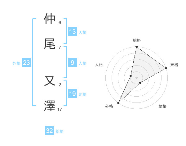 仲尾 又澤さんの外格は23画の5点!