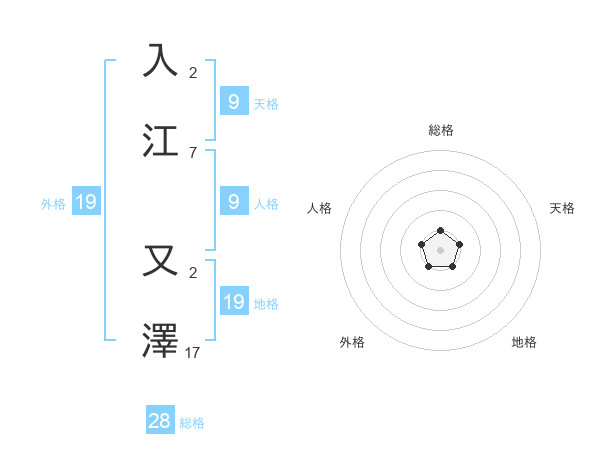 入江 又澤さんの総格は28画の1点!