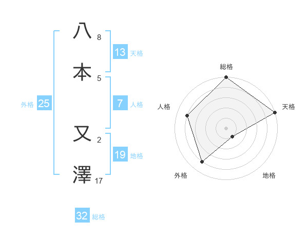 八本 又澤さんの総格は32画の5点!
