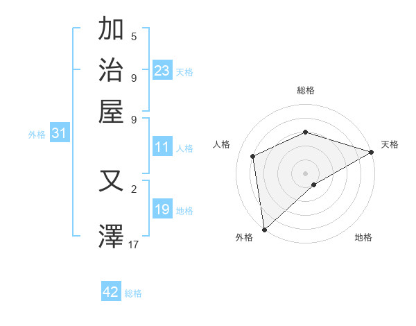 加治屋 又澤さんの天格は23画の5点