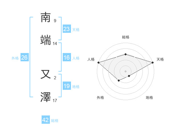 南端 又澤さんの天格は23画の5点!