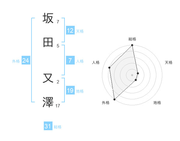 坂田 又澤さんの外格は24画の5点!