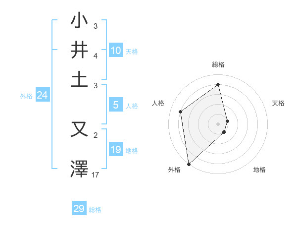 小井土 又澤さんを姓名の画数から五運を鑑定