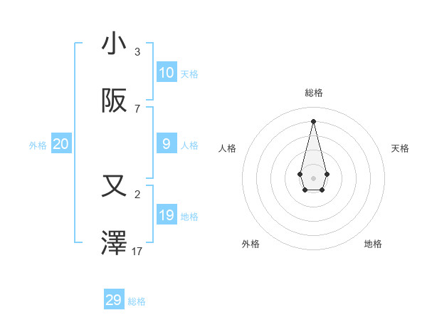 小阪 又澤さんの総格は29画の4点!