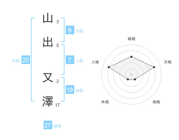 山出 又澤さんの総格は27画の3点!