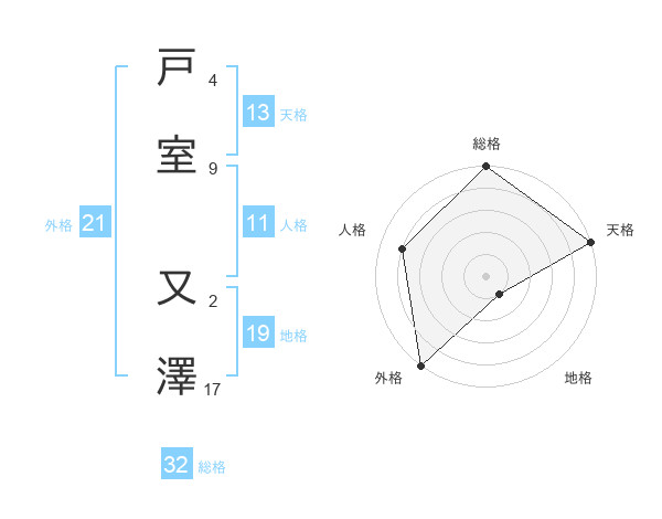戸室 又澤さんを姓名の画数から五運を鑑定